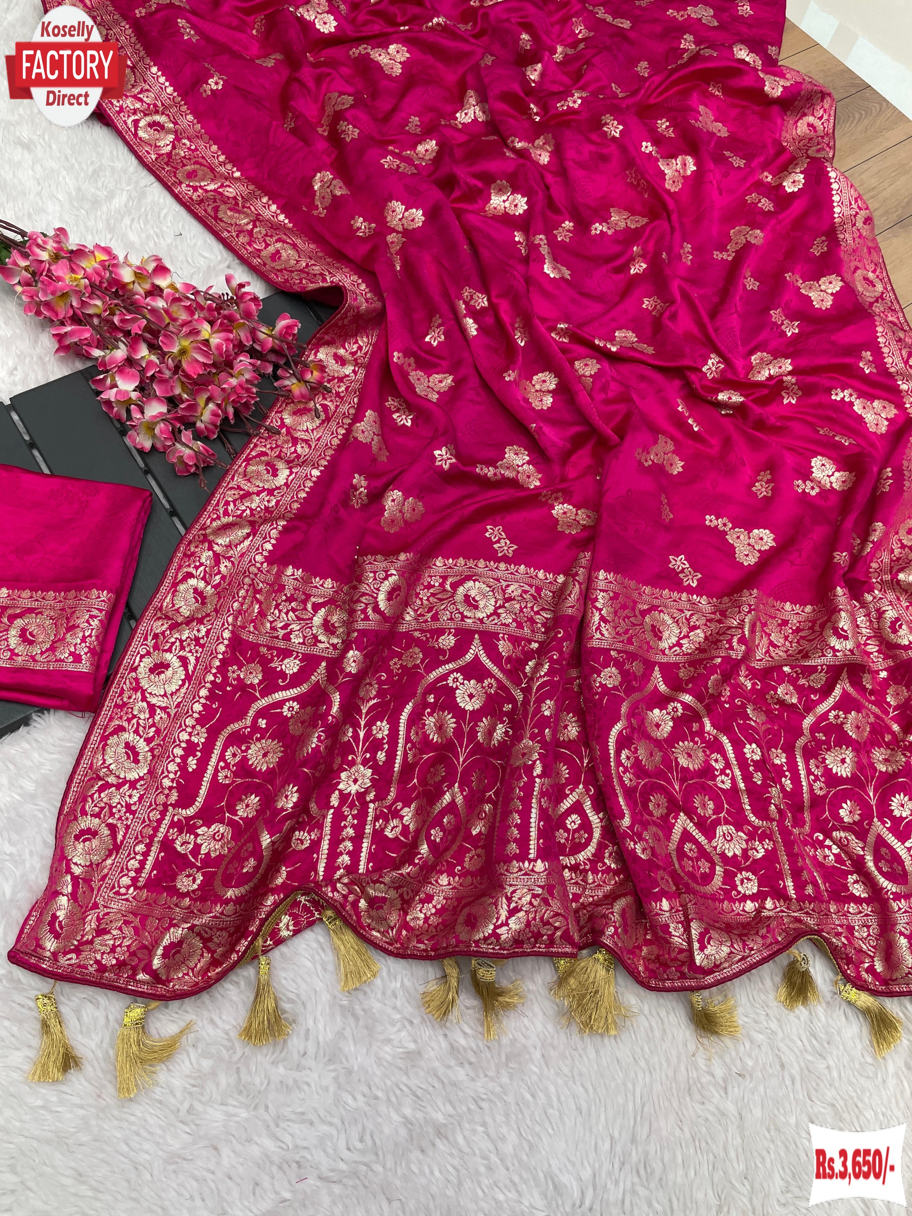 Hot Pink Satin Soft Silk Banarasi Weaving Saree