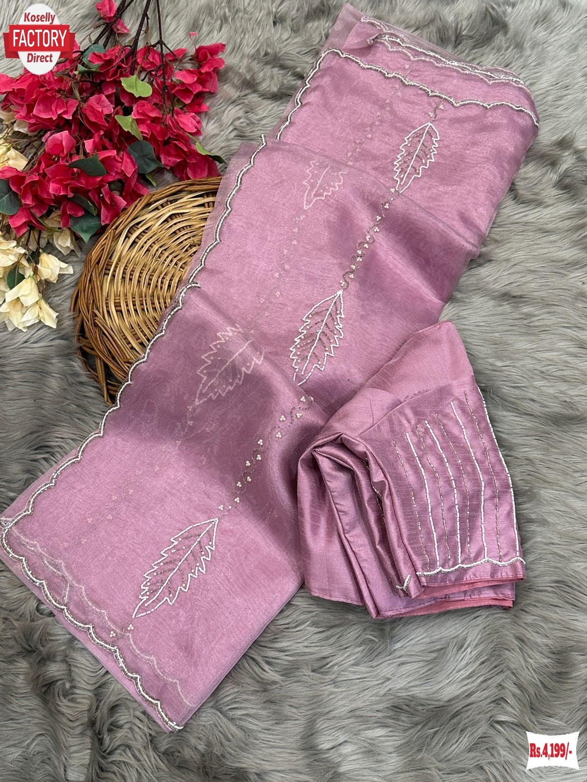 Pure soft Organza silk saree with amazing Hand work of moti and cutwork.