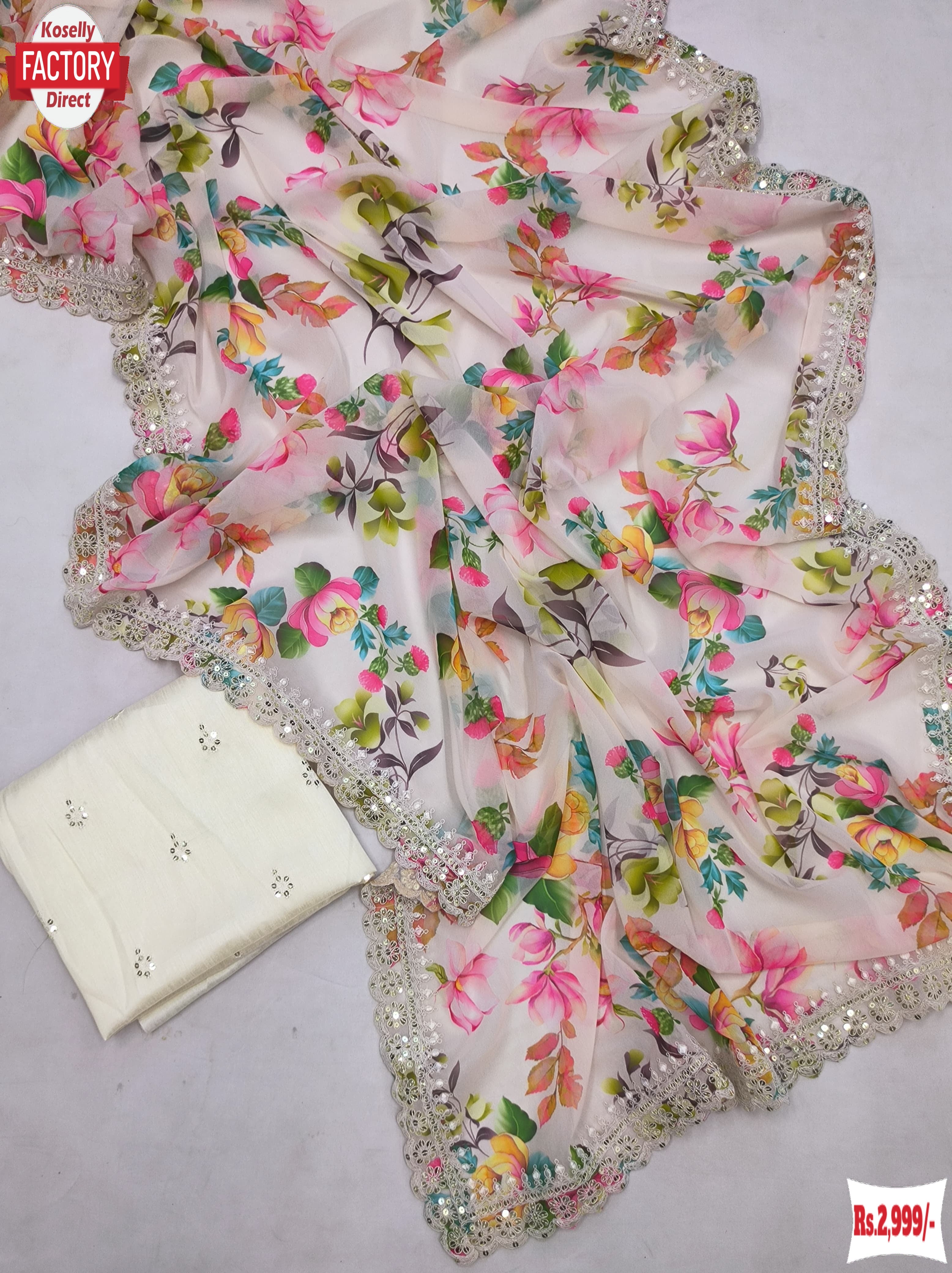 Off-white Soft Georgette Digital Printed Saree