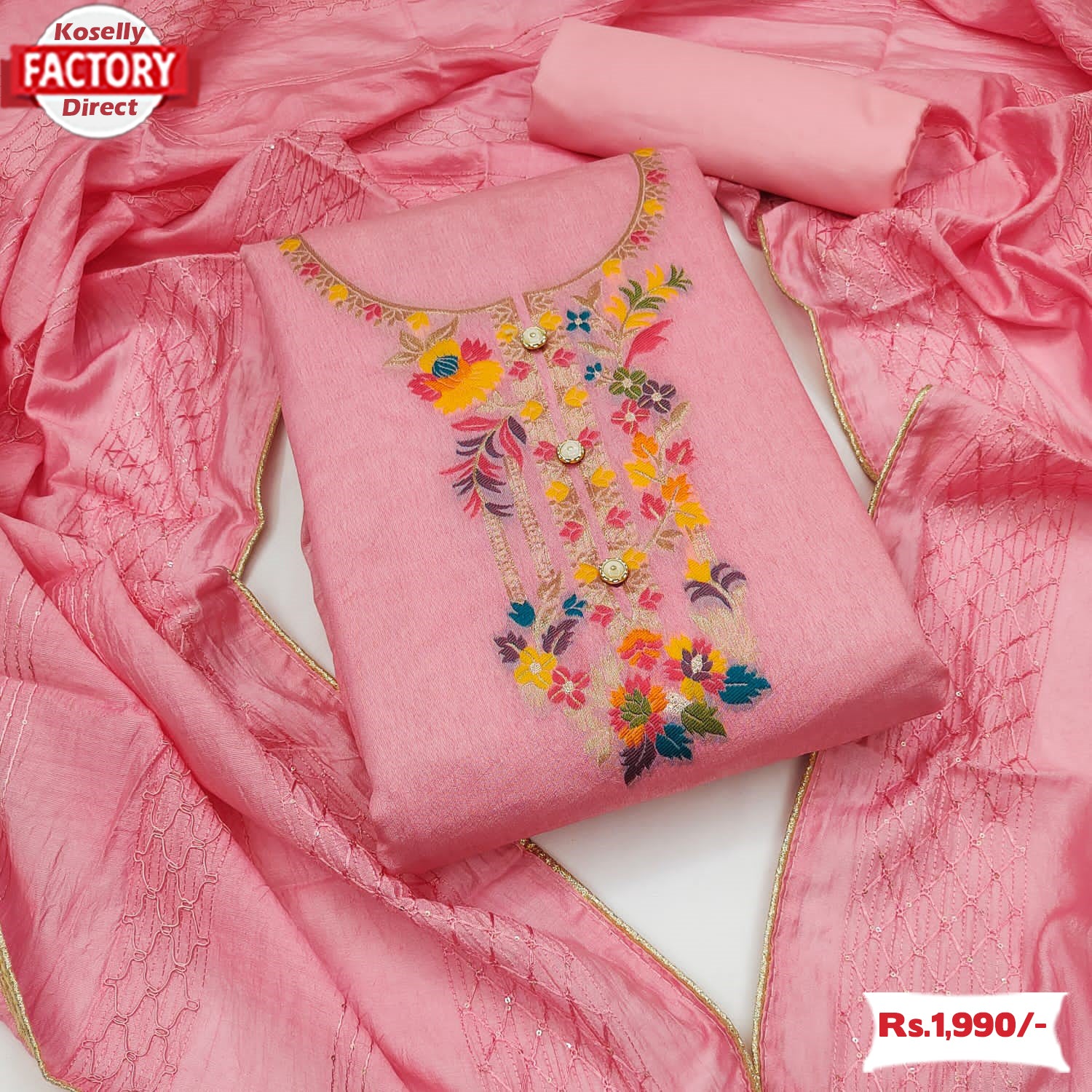 Pink Dyeable Jacquard Kurtha Suruwal Piece