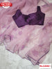 Purple Organza Hand Foil Work Saree With Readymade Blouse