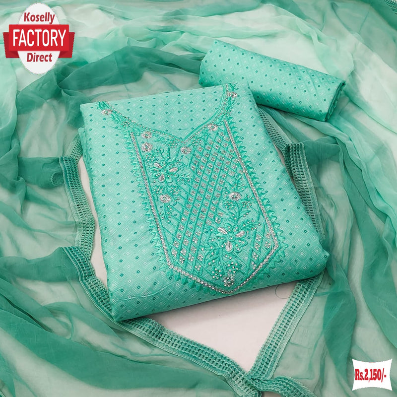 Sea Green Cotton Embroidered Kurtha Suruwal Piece