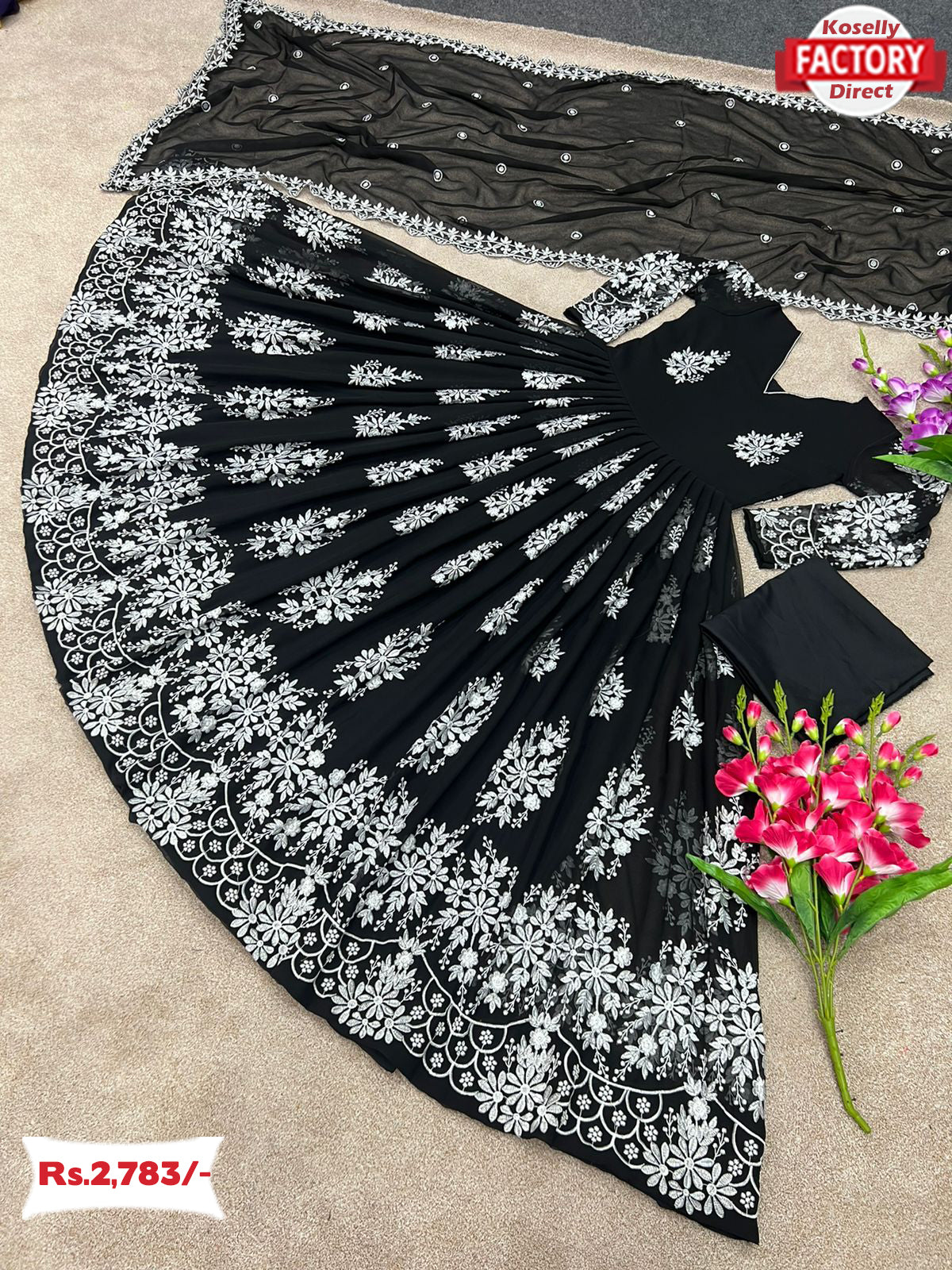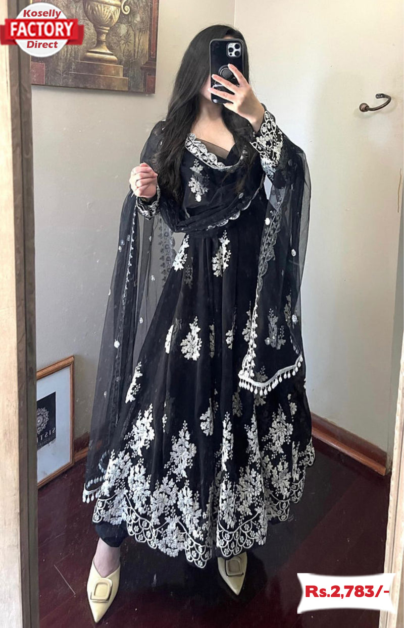👗 Gown Fabric : Faux Georgette With Heavy Embroidery Work with full sleeves