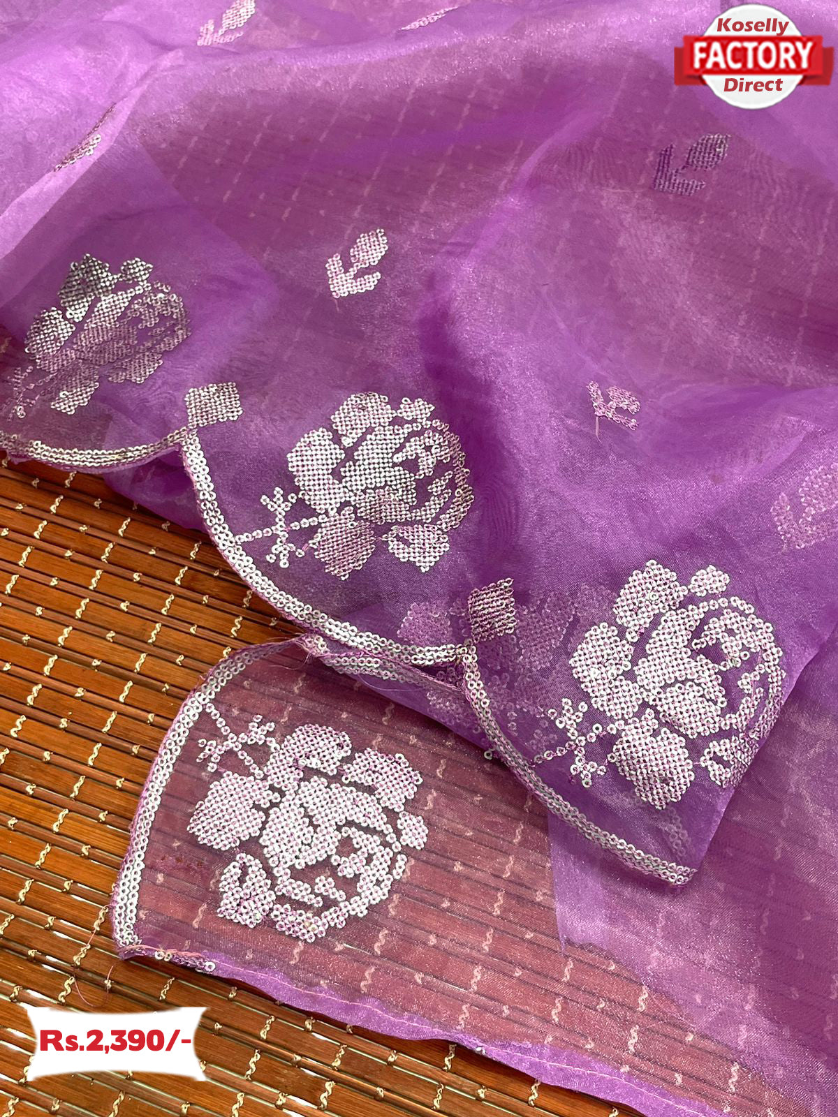 Saree:- Pure Soft Organza Silk With Cross Sequins Work With sequins Cut-work Border