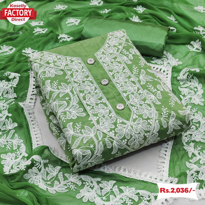 Mantis Green Embroidered Kurtha Suruwal Piece