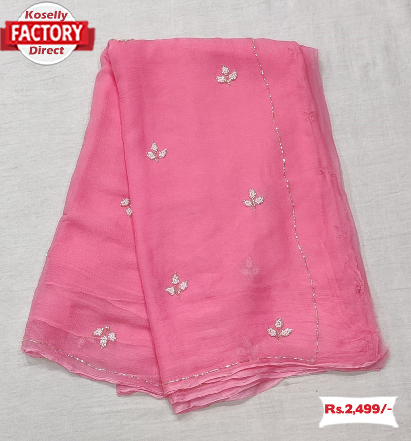 Pink Soft Silk Chiffon Handwork Saree