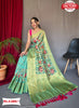 New concept of organza zari weaving saree with 8 inch gold zari weaved border with all over anokhi jaal design and rich weaved pallu with tassels attached, with a Touch of unique digital print concept.