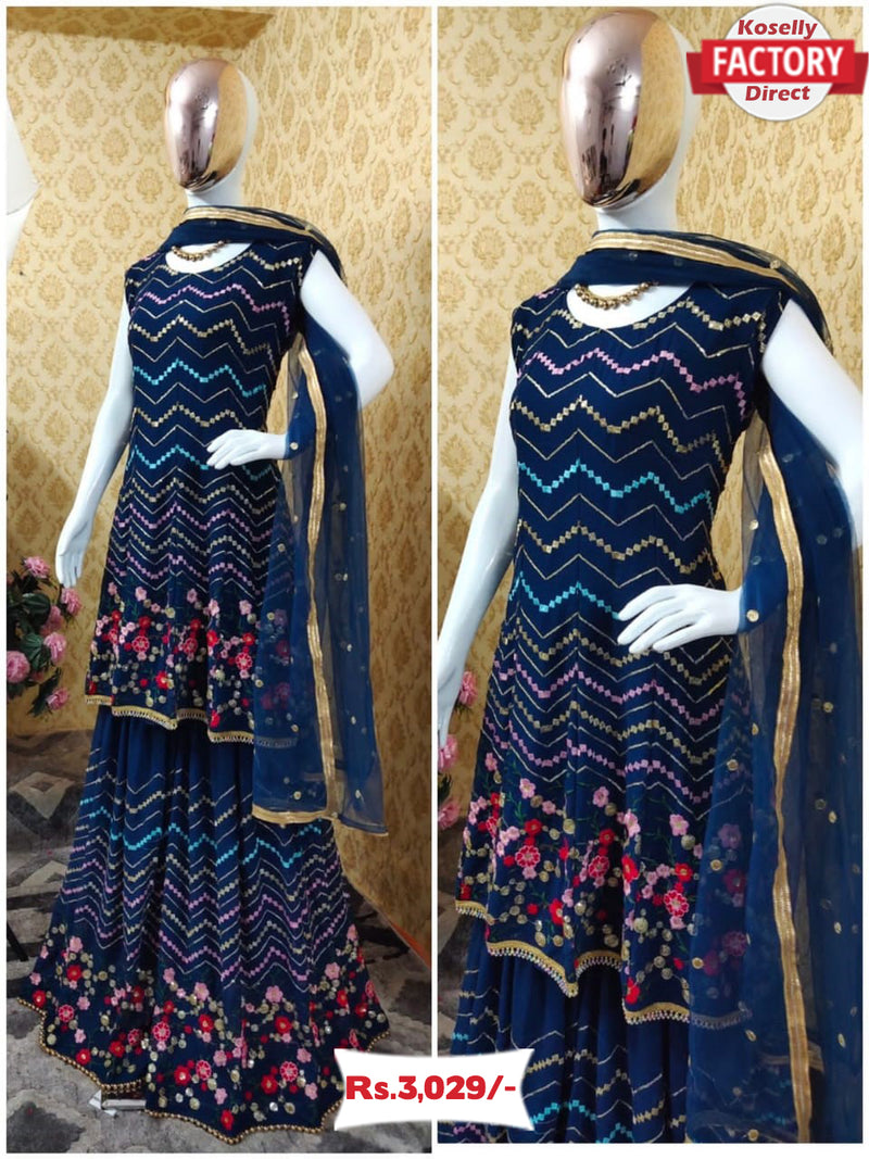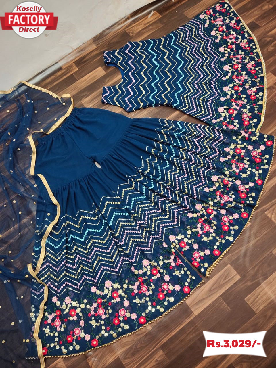 Deep Blue Designer Kurtha Sharara Dupatta Set