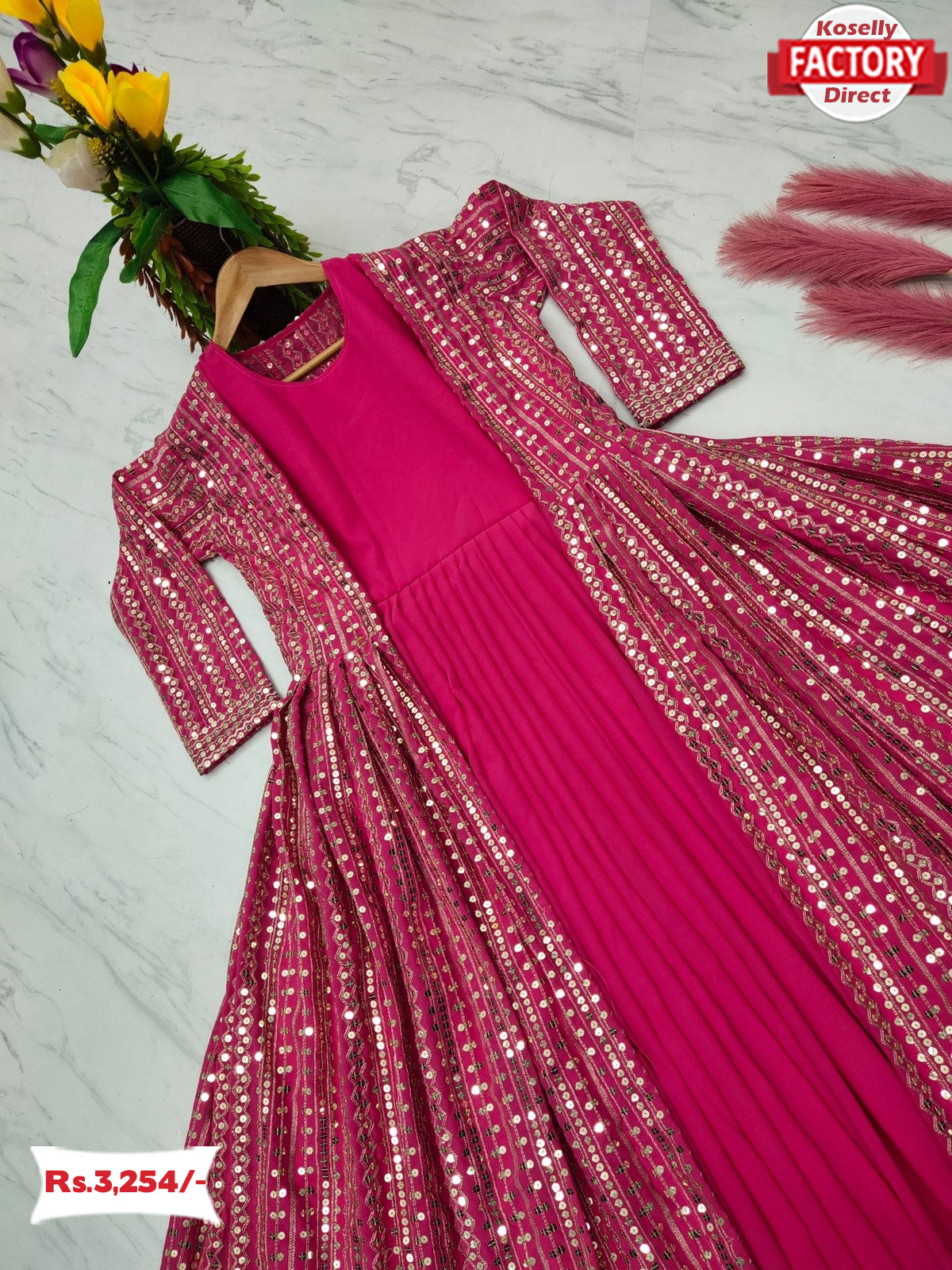 👉🧚♀️Koti Fabric * :Heavy Faux Georgette With Full Embroidery 7 mm Sequins Work With Work Sleeves