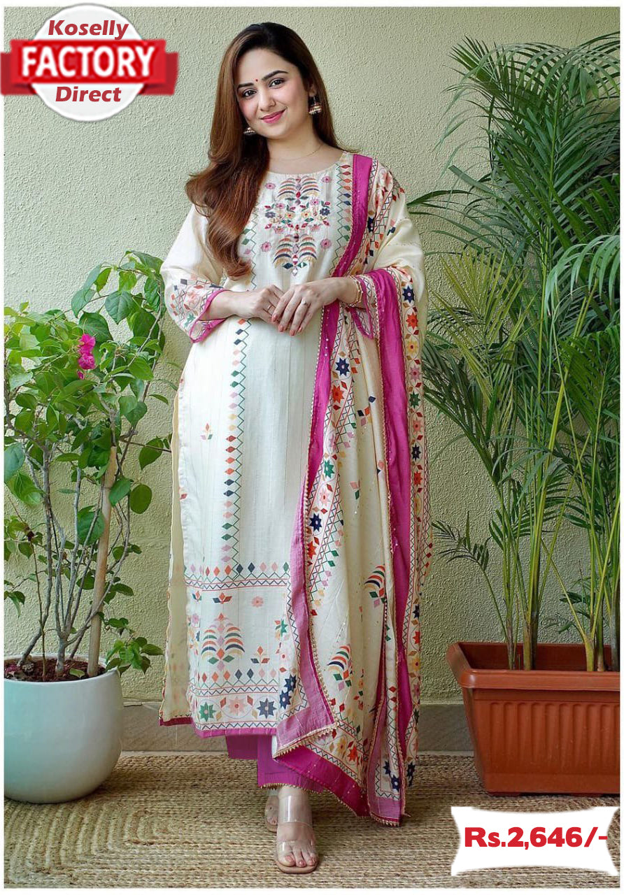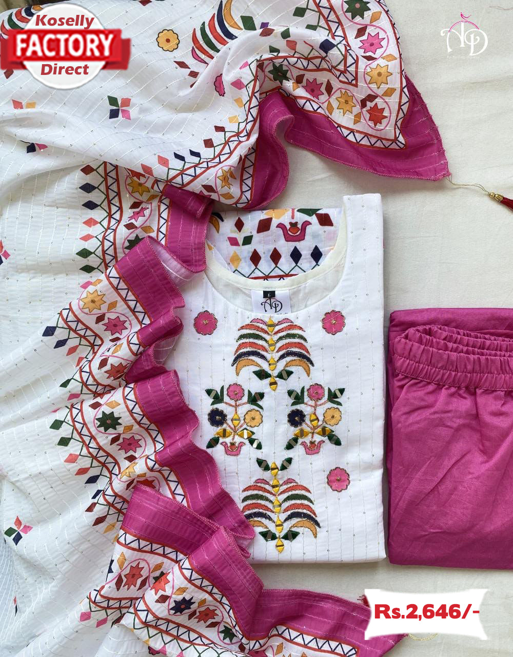 White And Pink Maslin Kurtha Palazzo Dupatta Set