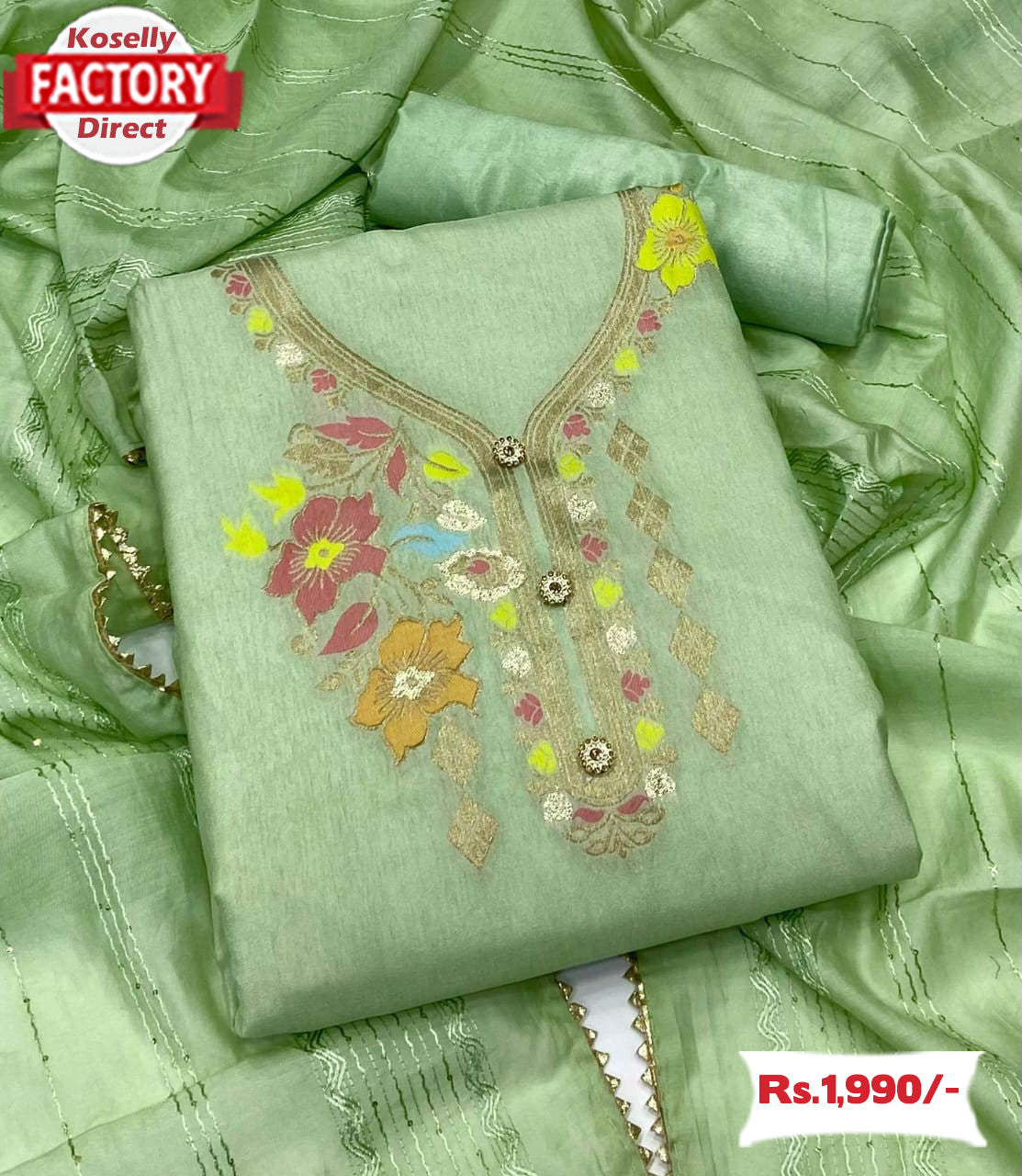 Green Dyeable Jacquard Kurtha Suruwal Piece