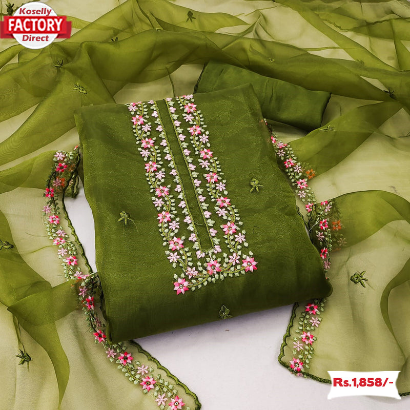 Mehendi Green Organza Multi-Embroidery Kurtha Suruwal Piece