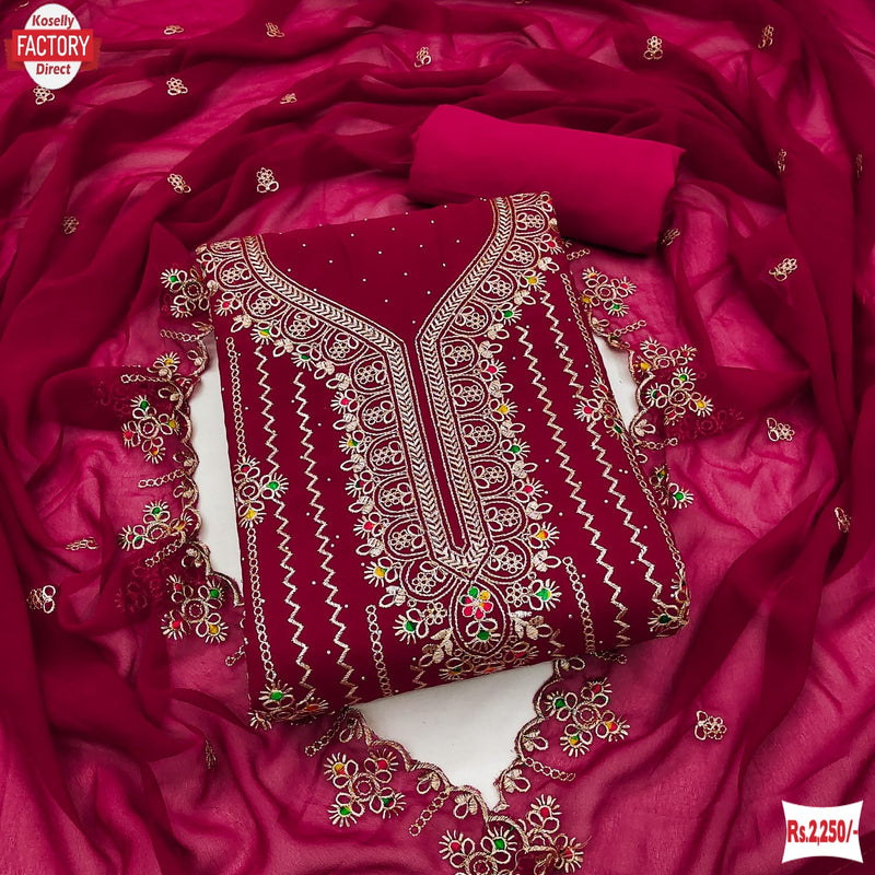 Dupatta Fabrics :- Faux Georgette Embroidery and work dupatta  (Cut:- 2.20 mtrs)