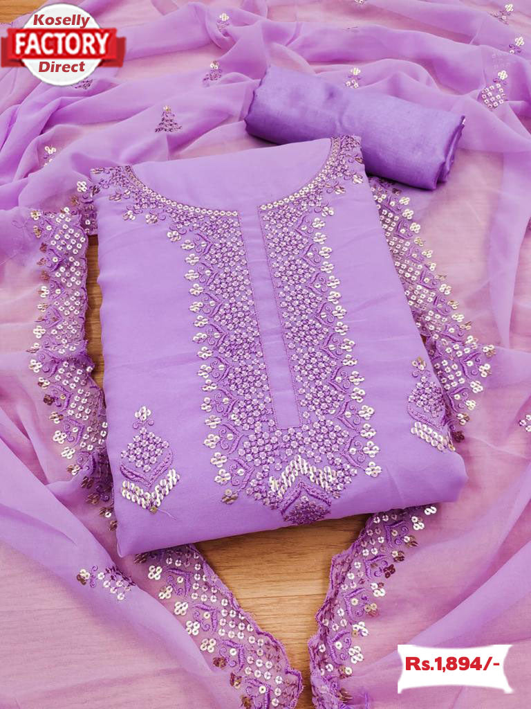 Lavender Georgette Sequins Embroidered Kurtha Suruwal Piece