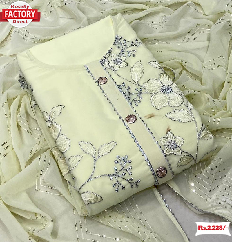 Lemon Yellow Georgette Embroidered Kurtha Suruwal Piece
