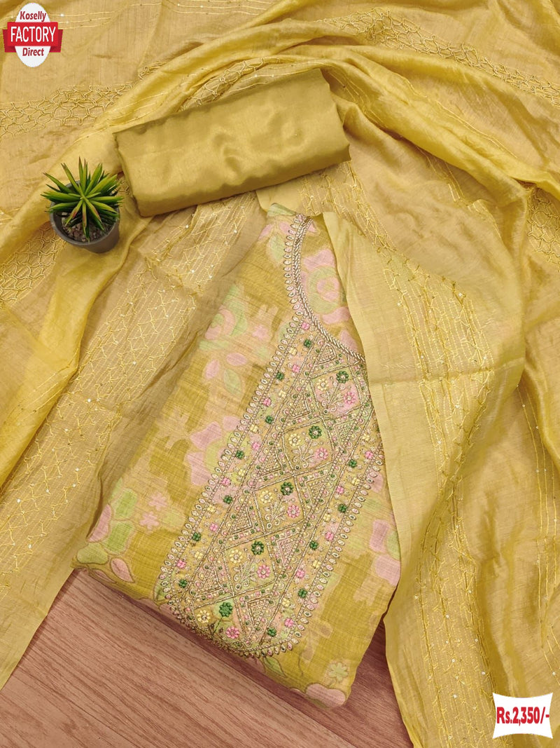 ▪ Top Fabrics:- Heavy Jacquard With Embroidery And Hand Work