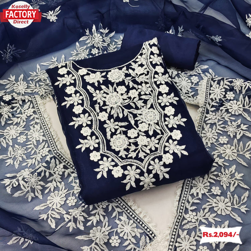 Navy Blue Organza Embroidered Kurtha Suruwal Piece