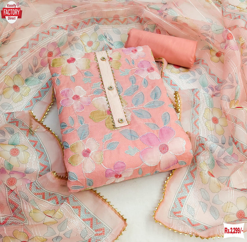 Top Fabric :- Organza Silk work with position print