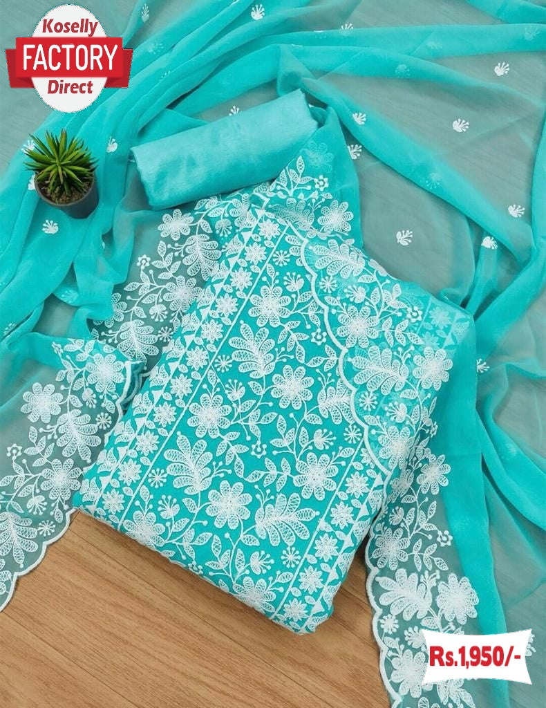Blue Georgette Embroidered Kurtha Suruwal Piece