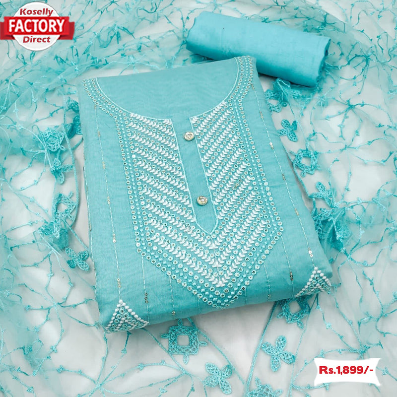 Sky Blue Modal Chanderi Embroidered Kurtha Suruwal Piece