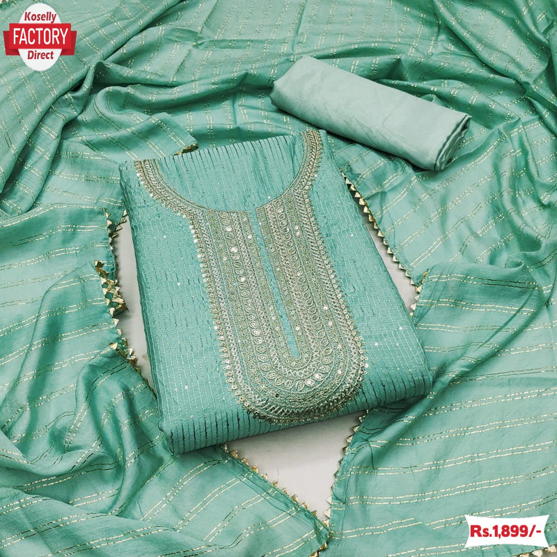 Top Fabrics:- Dyeable chanderi crochet work with embroidery work (2 mtrs)