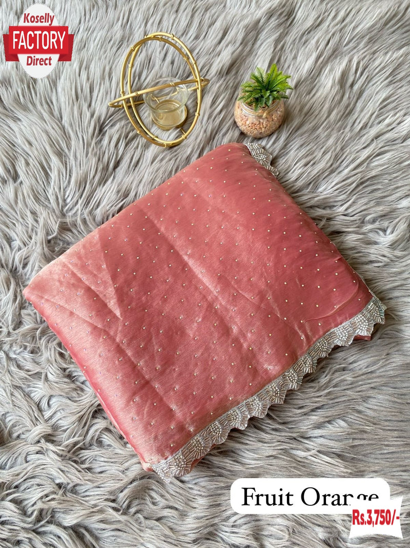 Dark Peach Jimmy Choo Zarkan Border Partywear Saree