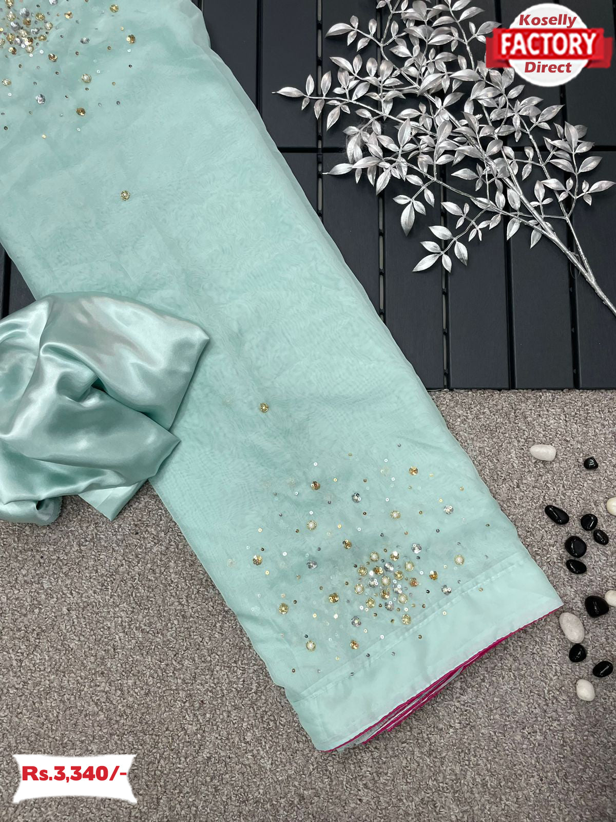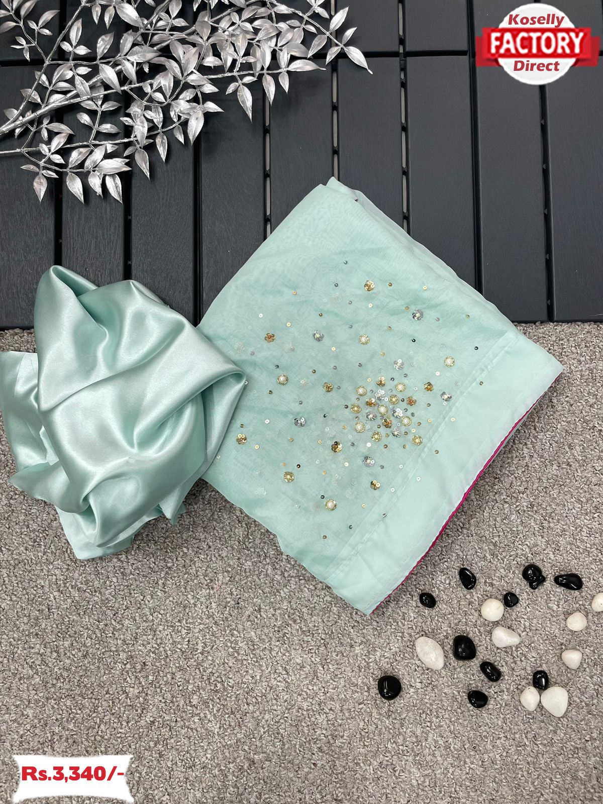 Pure Soft Organza Tabby Silk With Handcrafted Khatli Work with Satin Patta Border piping