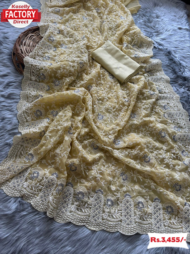 Light Yellow Partywear Embroidered Georgette Saree