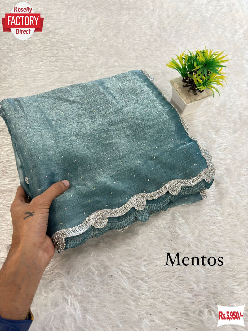 Mentos Blue Jimmy Choo Zarkan Border Partywear Saree
