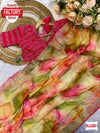 A blissful light pastel combination of colors with a Embroidery sequins work touched up with gold zariĀ ...š§Pure cheeze soft Organza silk saree with the Viscose thread work on border and rich pallu with zari work and paird with Heavy gota patti and sequins work (stitch ) blouseĀ size up to 40+.
