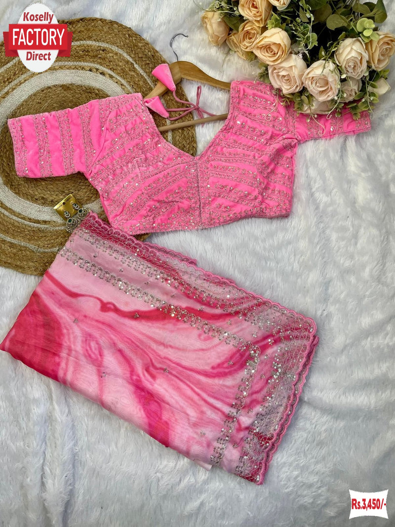 Pink Rangoli Silk Prism Print Partywear Sequins Worked Saree