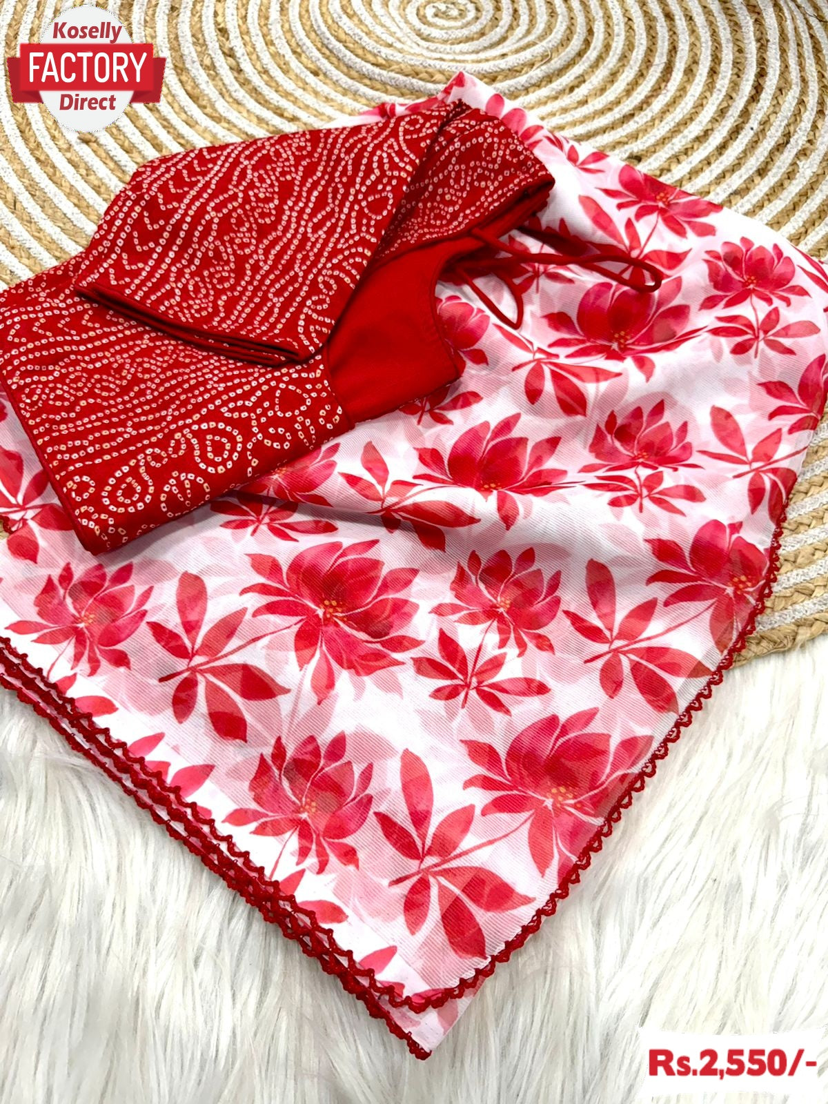 Red And White Pure Chiffon Saree With Stitched Blouse