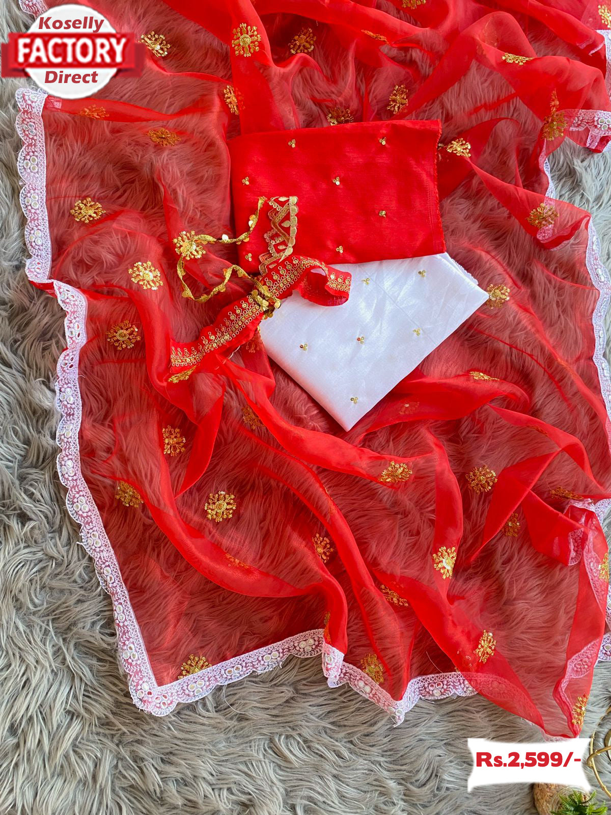 Blouse Bangalori Silk Two Colors With Work and Fancy 3 Types Laces 1 mtr Un-stitched