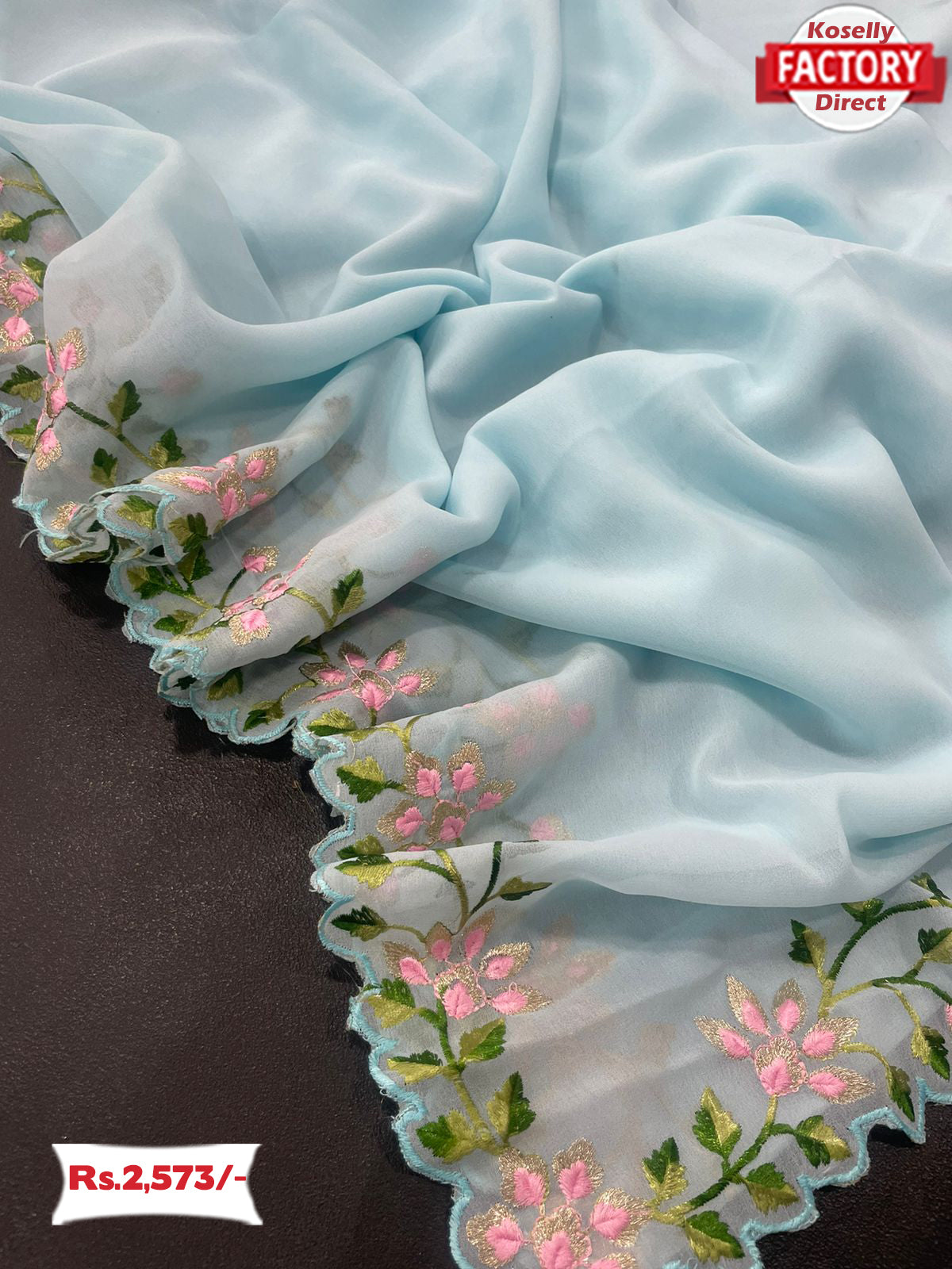 Soft Georgette with c pallu embroidery Thread Work with cutwork border.