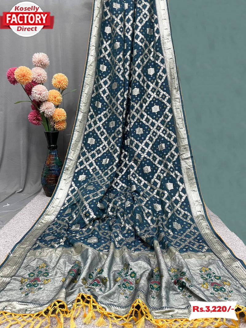 Teal Banarasi Viscose Saree With Tassels