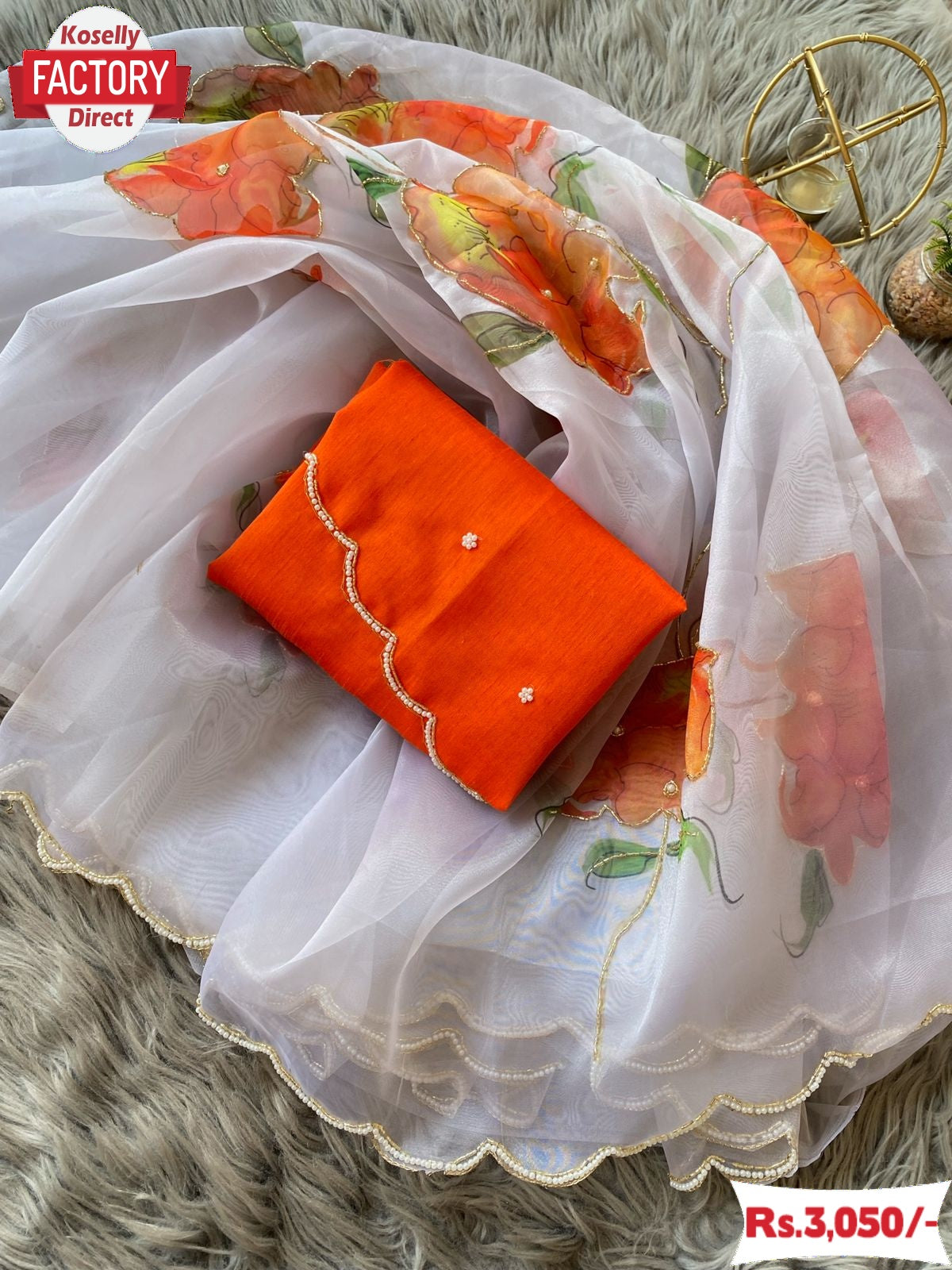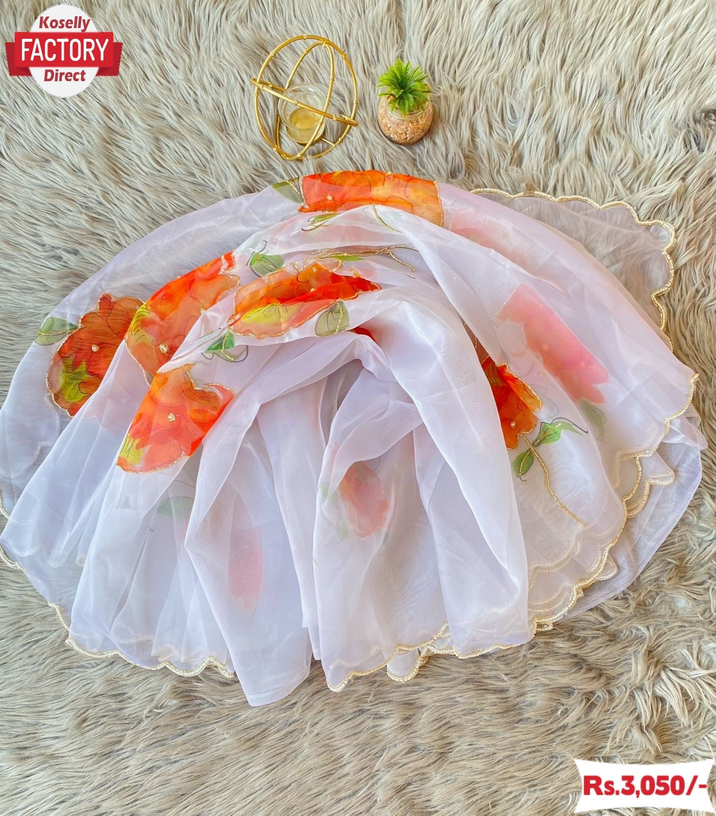Pure Organza With Digital Print And Handwork and Handwork Cut-work Border