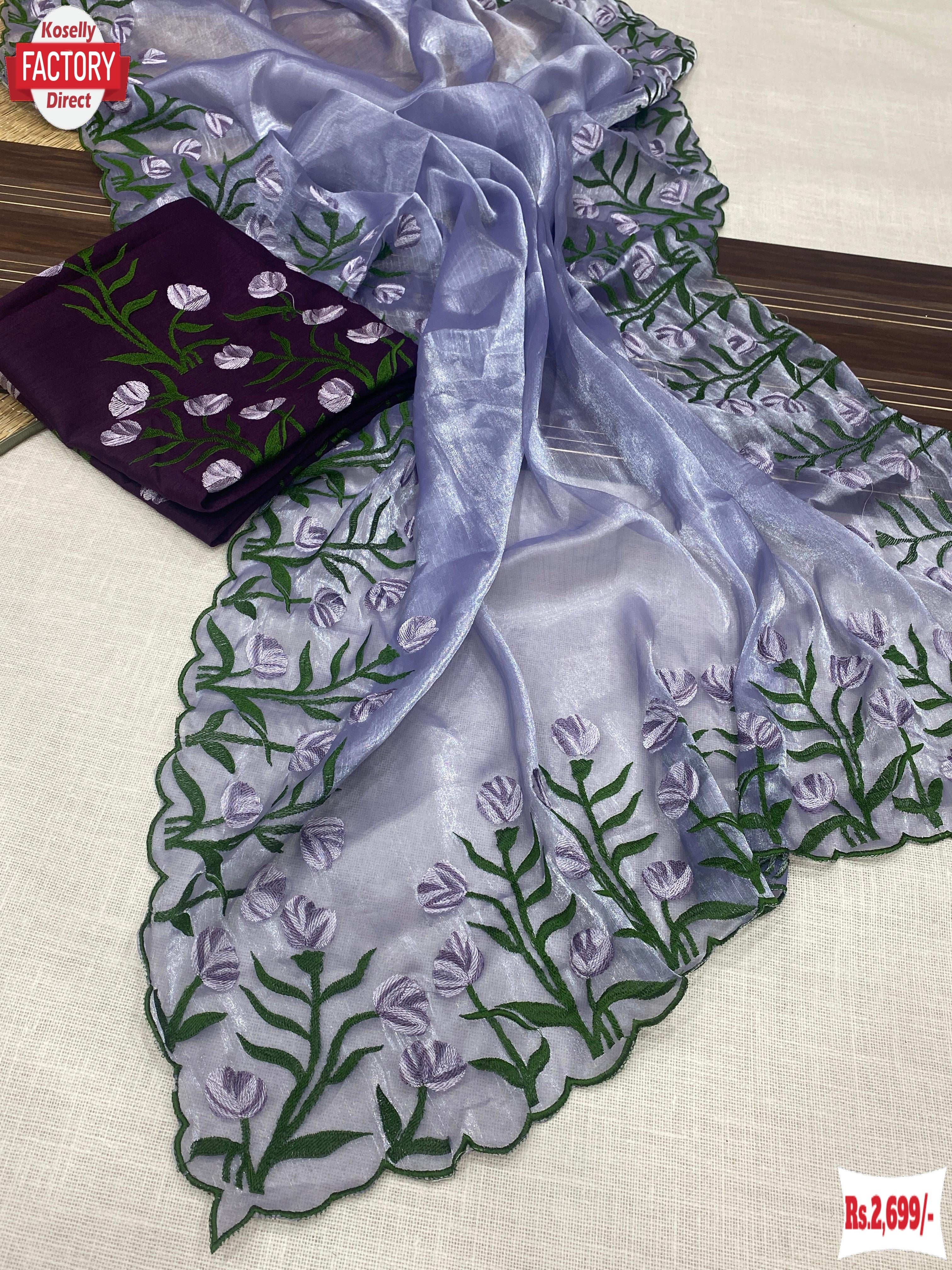 Cornflower Blue Chinnon Silk Thread And Zari Embroidered Partywear Saree