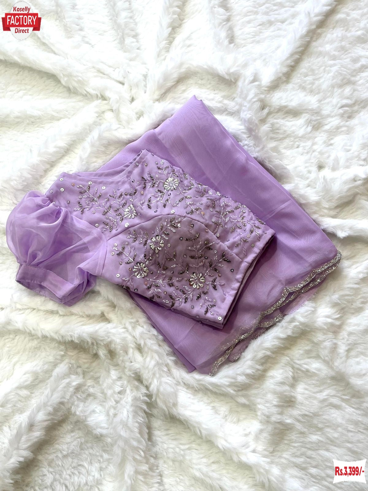 Lavender Pure Soft Organza Embroidered Partywear Saree