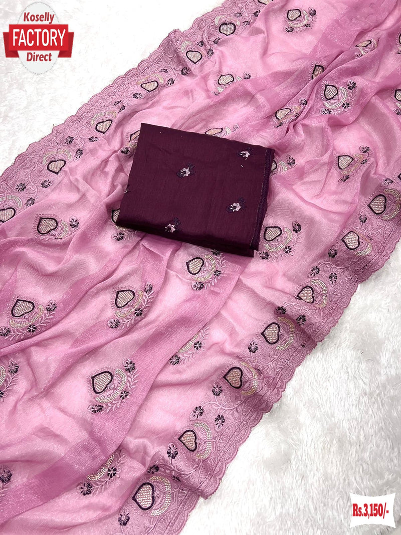 Lavender Shimmer Chiffon Embroidered Partywear Saree