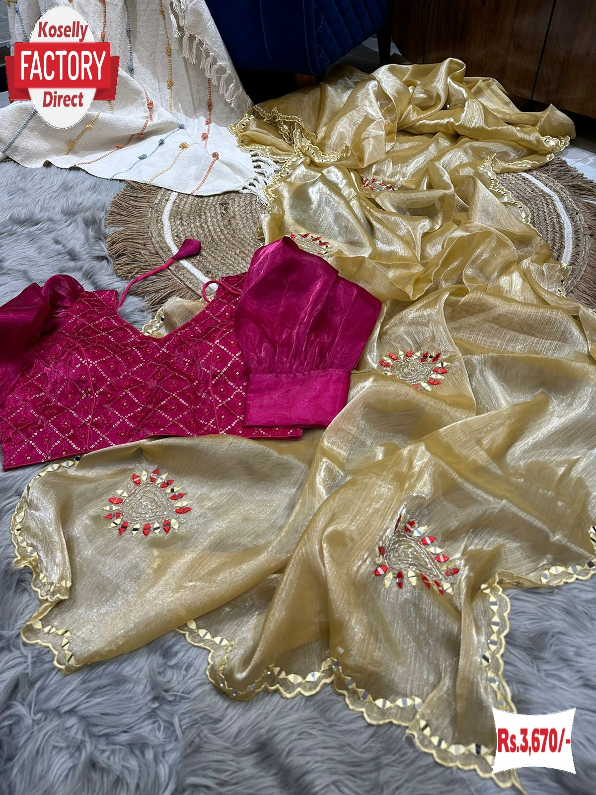 Golden Jimmy Choo Partywear Saree With Stitched Blouse
