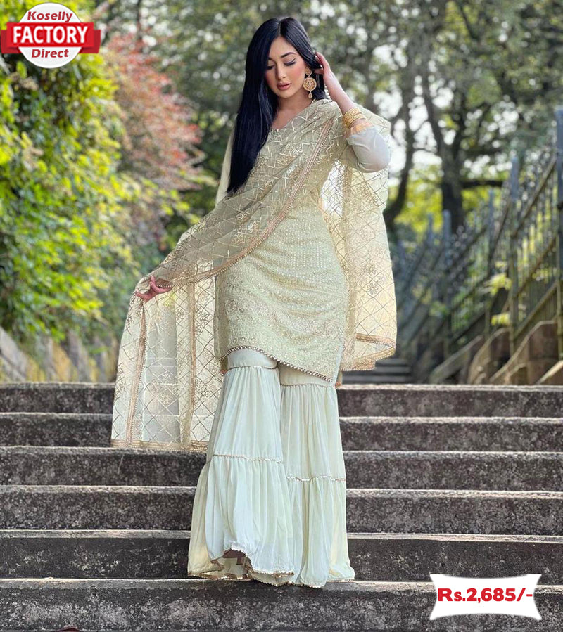 *Top Fabrics *Ā Ā  :Faux Georgette With Heavy Embroidery And 5mm Sequins Work With Moti Lace With Sleeves