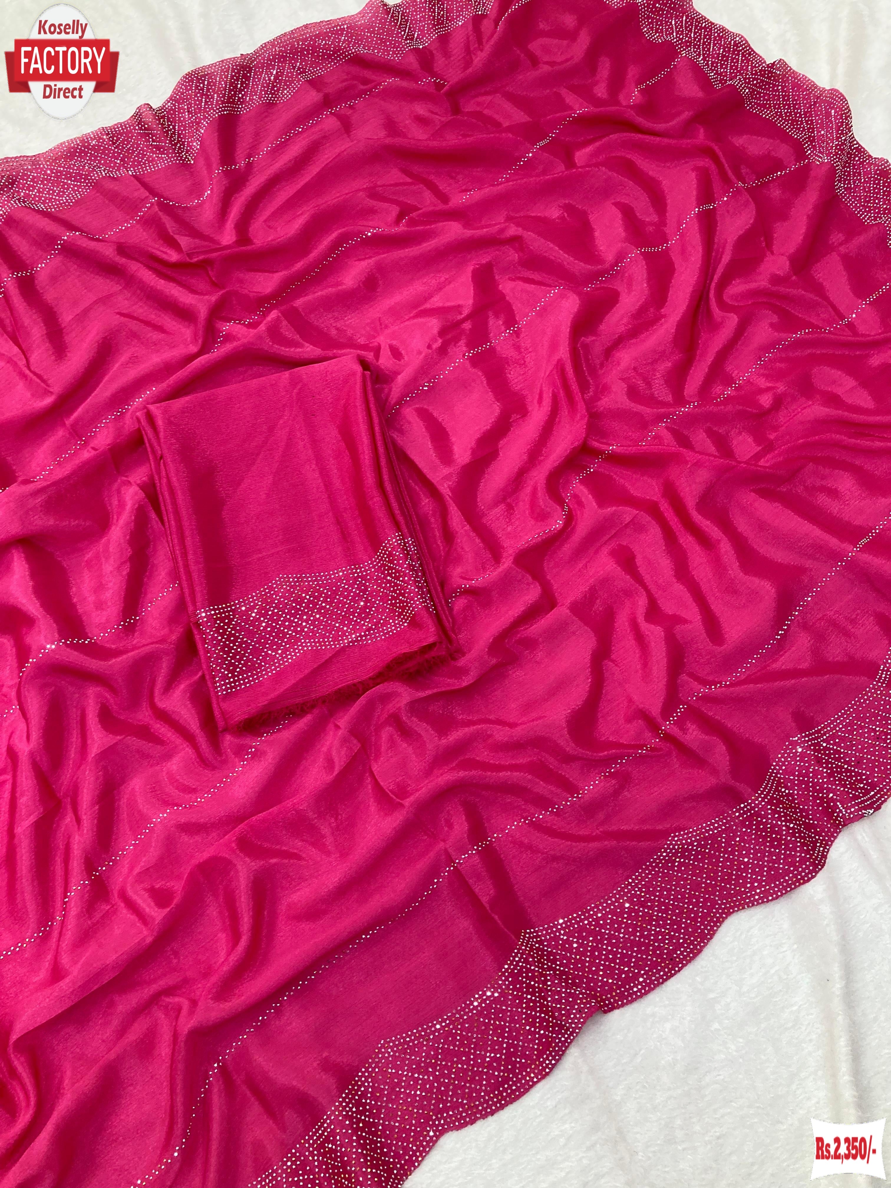 Pink Pure Chinnon Silk Partywear Saree With Stone Work
