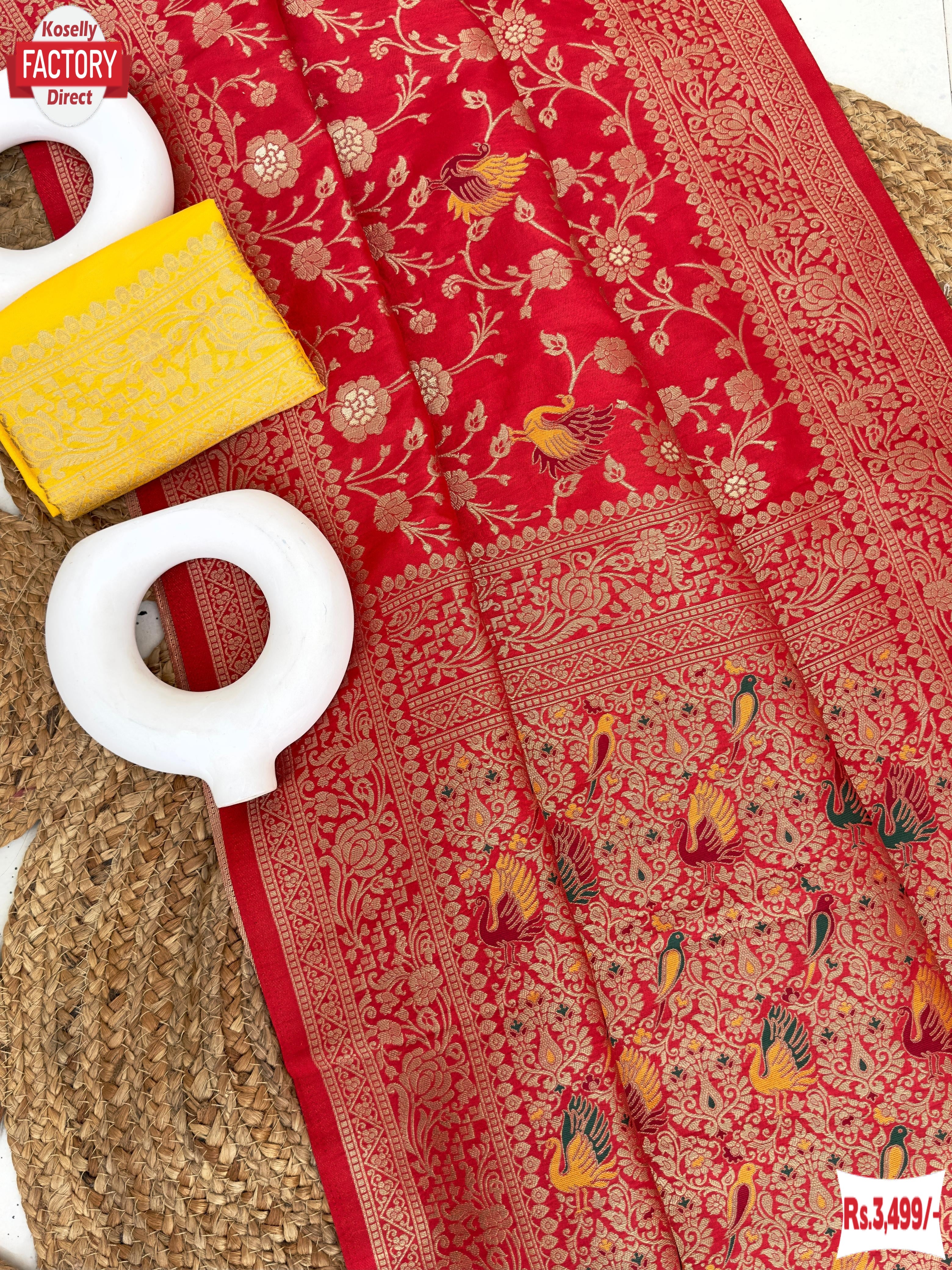 Exclusive heavy silk for any occasion. Viscose paithani pattern  silk floral pattern in zari weaving.