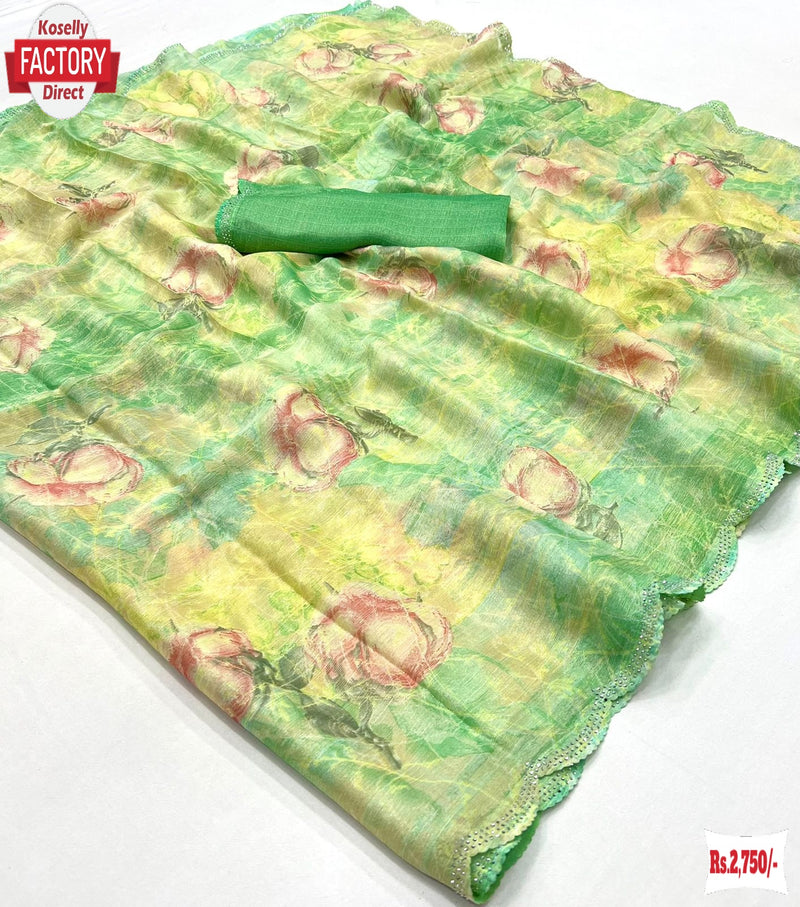 Stylish Brasso Partywear Saree With Stone Work