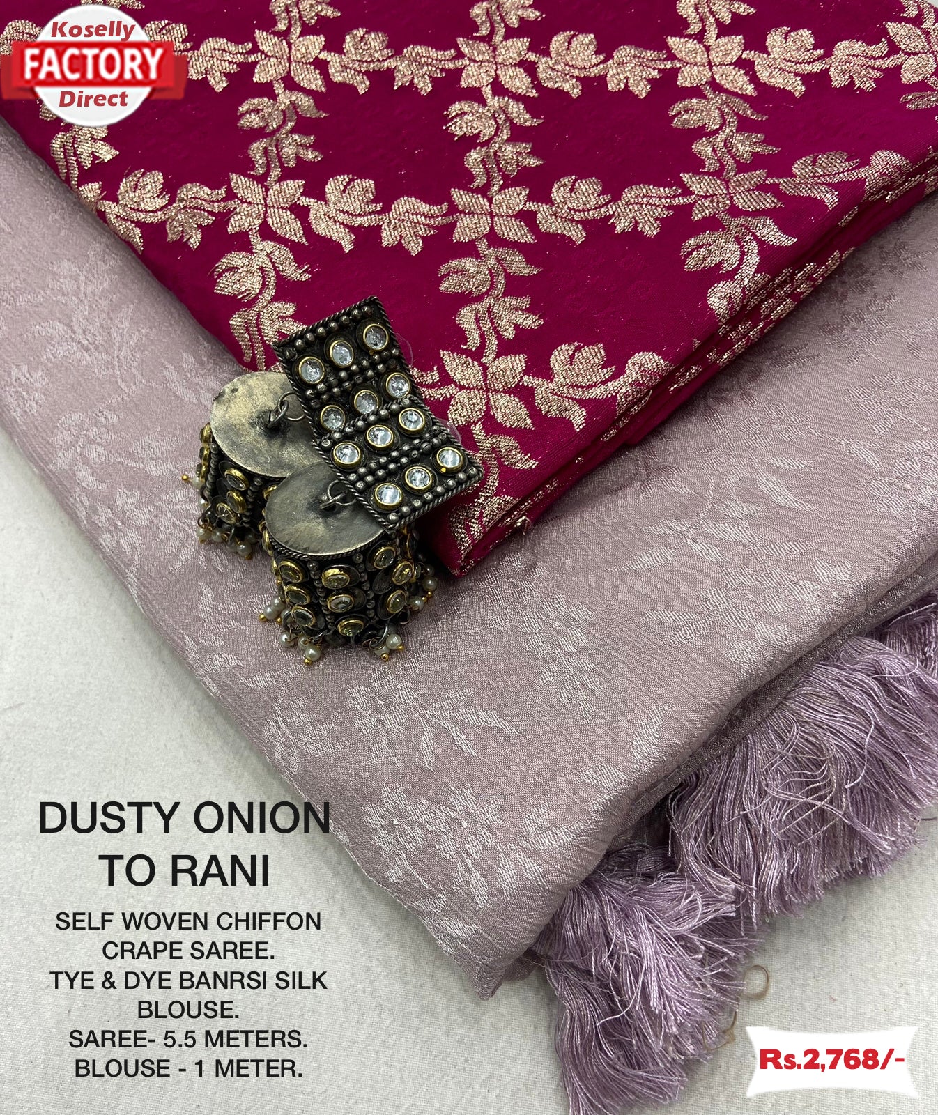 Dusty Onion Chiffon Crepe Saree With Magenta Blouse Piece