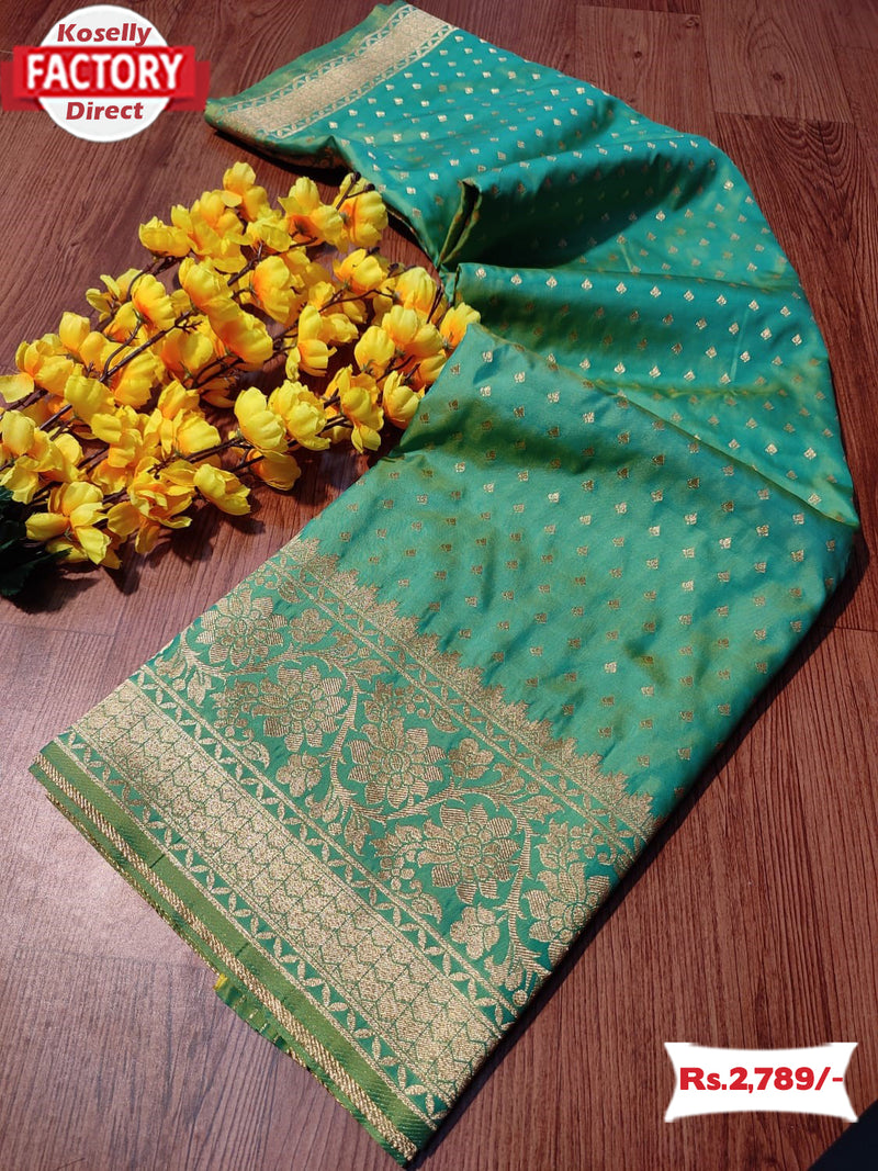 Faded Green Soft Banarasi Zari Weaving Saree