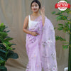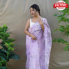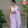 Organza Silk with a touch of hand painted loveliness. This gorgeous Organza Saree with handprints foil motif all over is splendorous and the contrast of the work is beautiful. This floaty, fine-spun organza saree mesmerizes the eyes of the beholder.