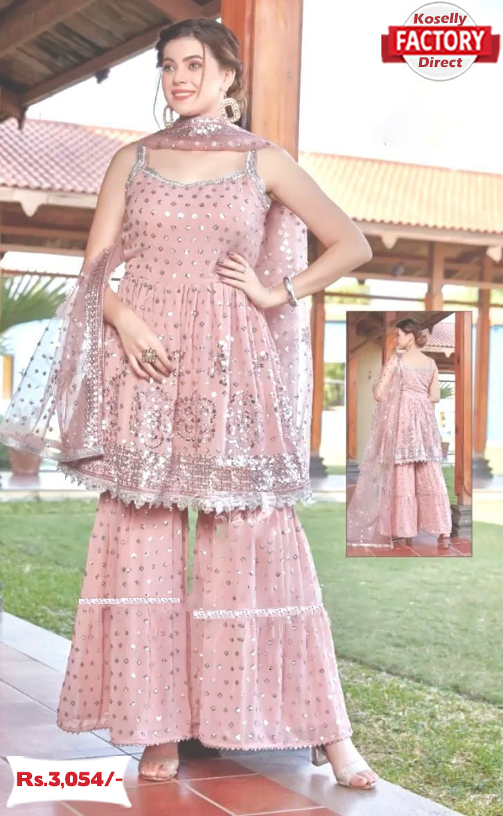 Light Pink Partywear Kurtha Sharara Dupatta Set