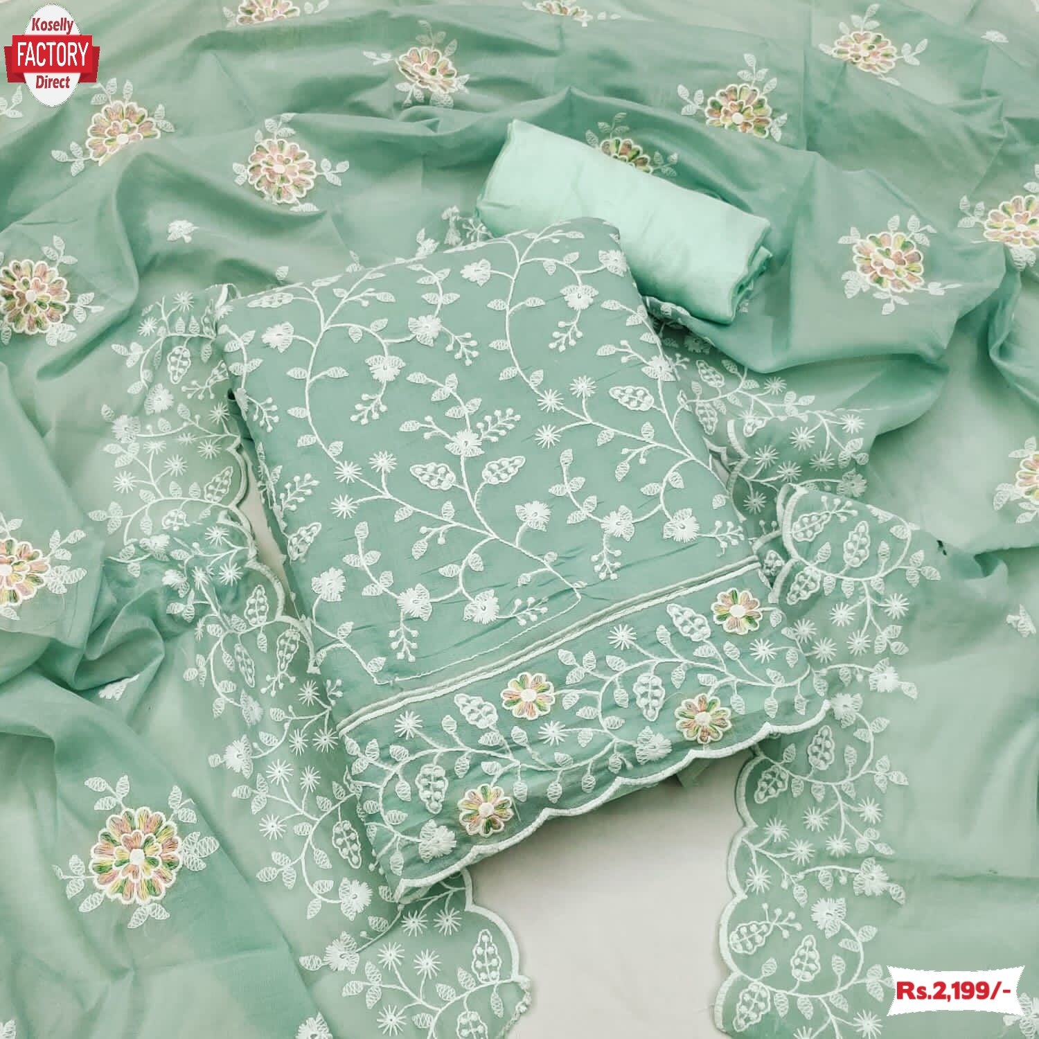 Light Turquoise Modal Chanderi Embroidered Kurtha Suruwal Piece