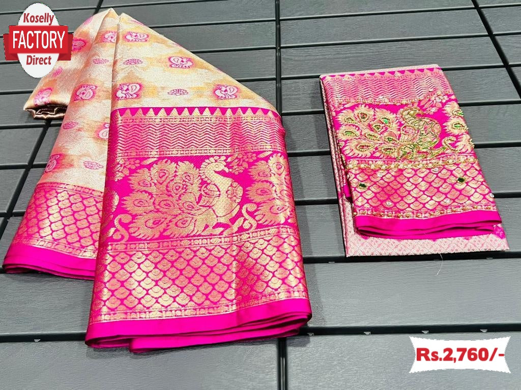 Introducing the highly sought-after Super Hit Saree! Made from luxurious Banarasi handloom fabric, this saree features intricate zari pattu tissue silk.